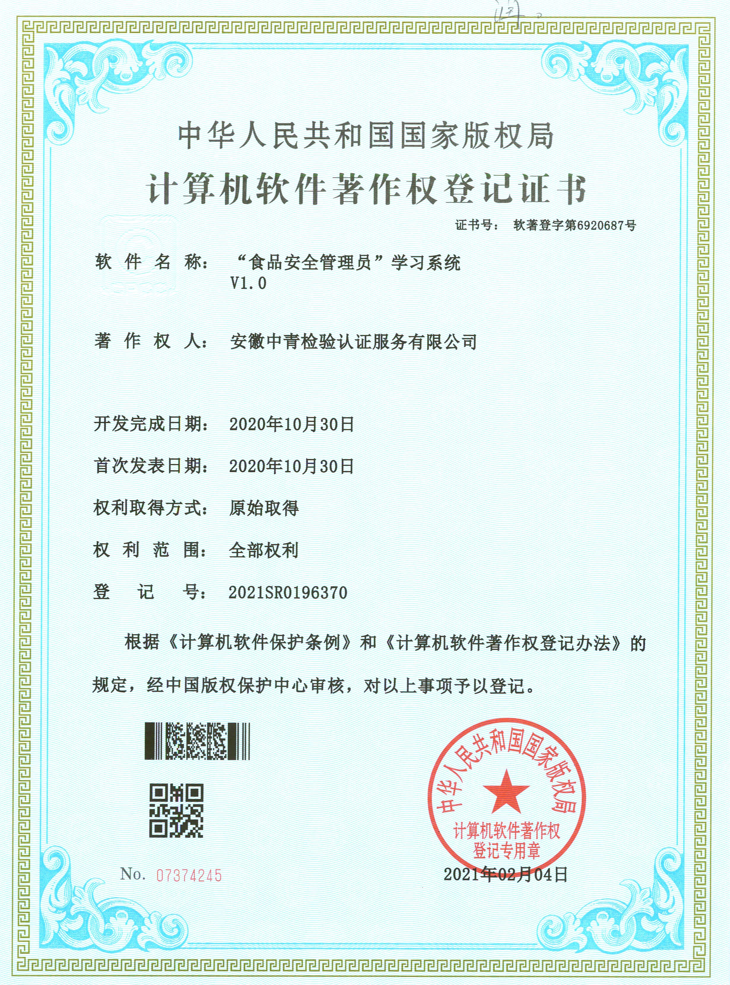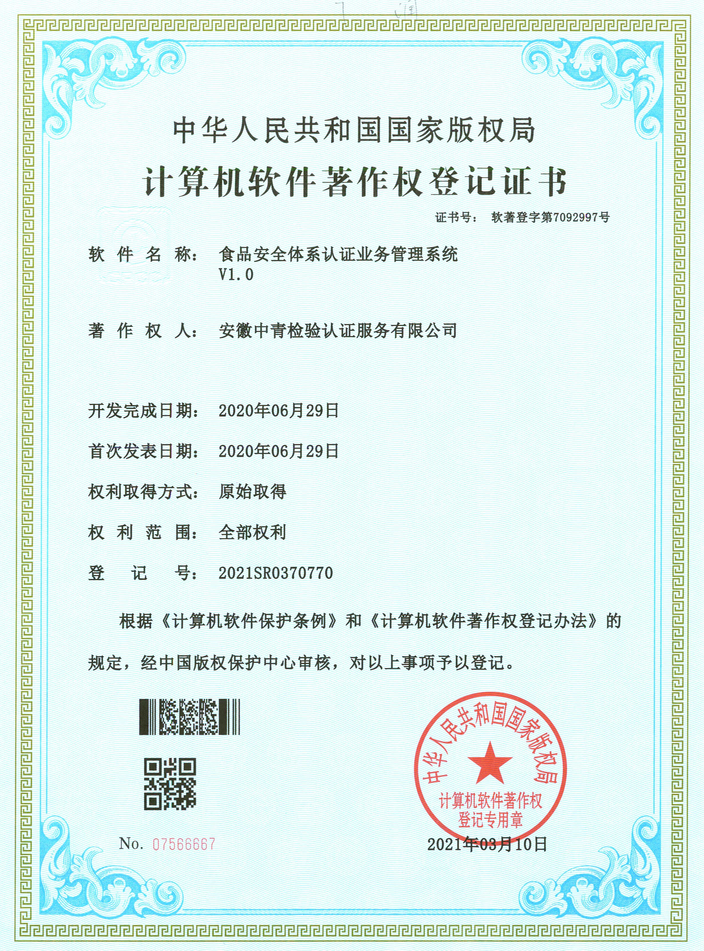 安徽中青檢驗(yàn)認(rèn)證服務(wù)有限公司成立于2017年6月6日,2018年1月3日通過(guò)國(guó)家認(rèn)證認(rèn)可監(jiān)督管理委員會(huì)批準(zhǔn),現(xiàn)認(rèn)證領(lǐng)域:質(zhì)量管理體系、環(huán)境管理體系、職業(yè)健康安全管理體系、食品安全管理體系、HACCP管理體系、有機(jī)產(chǎn)品認(rèn)證、良好農(nóng)業(yè)規(guī)范、服務(wù)體系、醫(yī)療器械質(zhì)量管理體系、企業(yè)誠(chéng)信管理體系、食品工業(yè)企業(yè)誠(chéng)信管理體系、食安安徽品牌等類別認(rèn)證。
